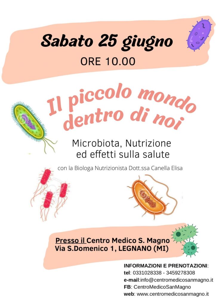 Sabato 25 giugno 2022 alle ore 10:00 si terrà un evento gratuito ed aperto a tutti sul microbiota intestinale presso il Centro Medico San Magno di Legnano (Mi).